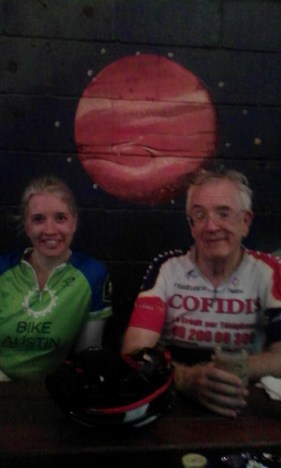 4) Lastly, and bestly, I got to ride with someone I consider a bit of a mentor and coach. We met at the Mamma Jamma Ride to Beat Breast Cancer last fall, and she’s generously emailed me a lot of advice. Some I’m trying to do. Her biking name is Death Valley Beth, from when she used to do long rides… IN THE HOTTEST PLACE IN AMERICA! How cool is that? Very. How about the fact that last month she won her age group in the Texas Senior Games 5K Time Trial, and came in 2nd in the 10K TT? Cooler. Her next challenge? The Triple Bypass Ride in the Rocky Mountains, which is 120 miles and over 10,000 feet in one day. Even more bad-assery. See what I mean about meeting some awesome people while biking?