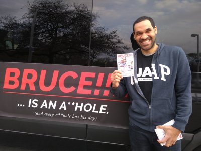 Famous movie critic Leonard Maltin from Maltin on MoviesJennifer Hanway is making you verrrryyyy sleeeepppppyyyy…..Dick Cavett kindly posed with A Dude, looking much more serious than he was. Just before this, he took a number of photos. He asked me if I had a house we could escape to, and I said yes. We didn’t.Mexican Day of the Dead light up dolls.Old Seaholm power plant is now a fancy modern building.This guy made and stars in his own movie, Bruce Is An A**hole. But Eden was very nice.Julia markets a sleep pillow and was riding a cool old bike.
