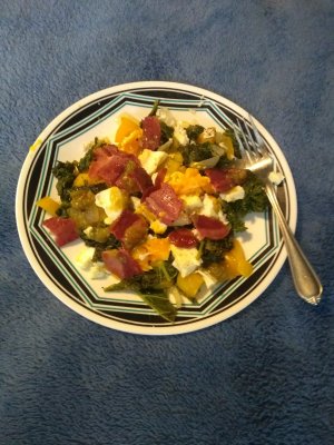 I may have found some income for a short time, and if I do, that means I can buy more kale and eggs like I had for brunch in the picture below. It also means probably less time to spend messing about on the blog. It had to happen. “Blogging and books are marathons,” job coach Marc Miller of Career Pivot said to me today.