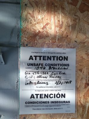 Oh, by the way, this is the same house that Austin Police SWAT (Strategic Weapons and Tactics) stormed last week with loudspeakers, shutting down the street, and concussive grenades, since the meth-dealing junkies inside refused to come out.  He’s in jail now, but I don’t know who this dog owner is.  Today there was no guy, no truck and no dog, so score one for me.