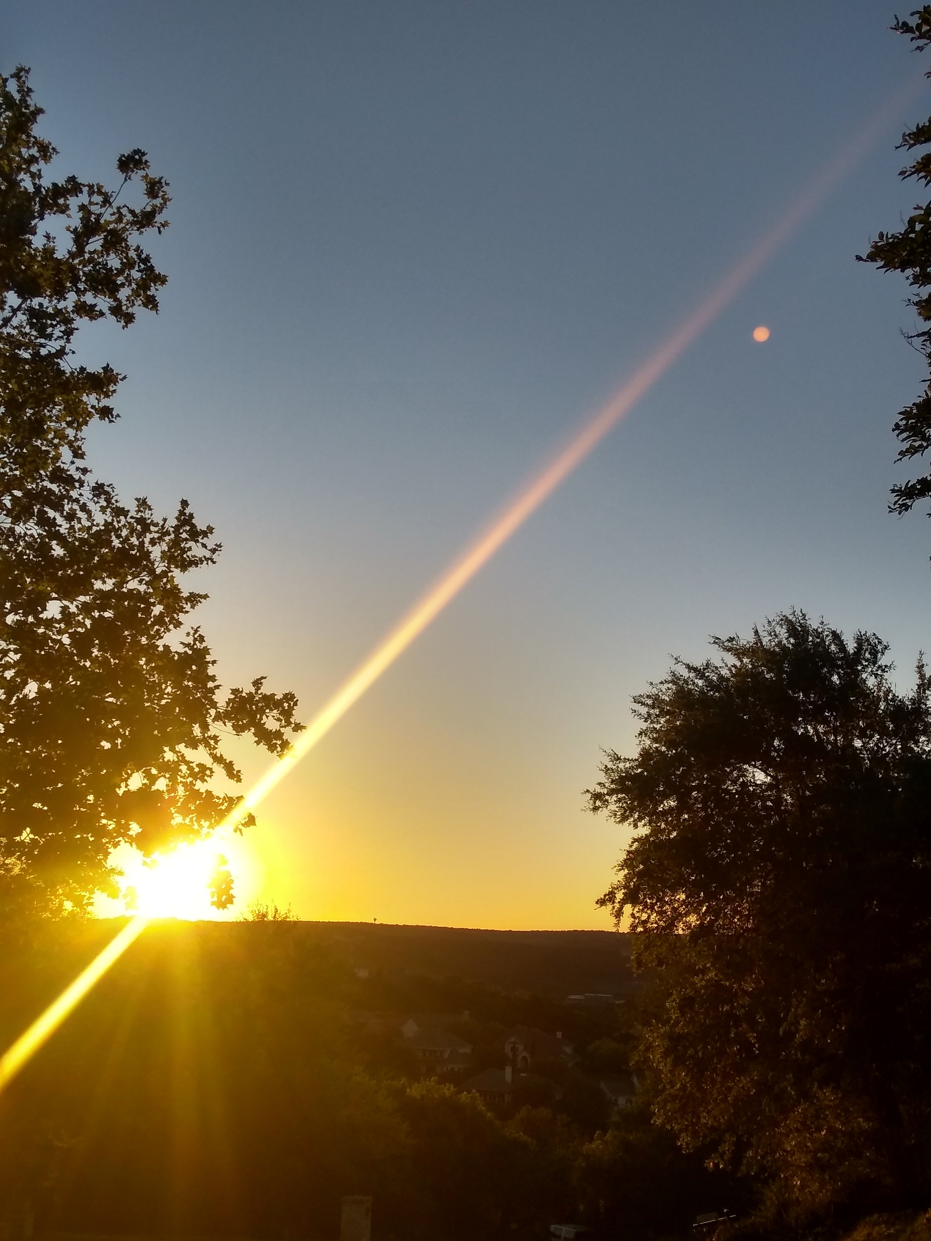 In the end, I was treated with a view of the rising full moon, which had an orange tint. Those photos never turn out well. I made my way home, happy to have put in a decent longer ride than I have been on my various commutes to appointments and errands. A simple joy ride, like I blogged about a while ago. It was just for the fun of it, with “no particular place to go” (which is the title of a blues standard), on a perfect day. Aside from maybe helping and hurting my knees simultaneously, there were no injuries, wrecks or tickets, for which I’m always grateful.