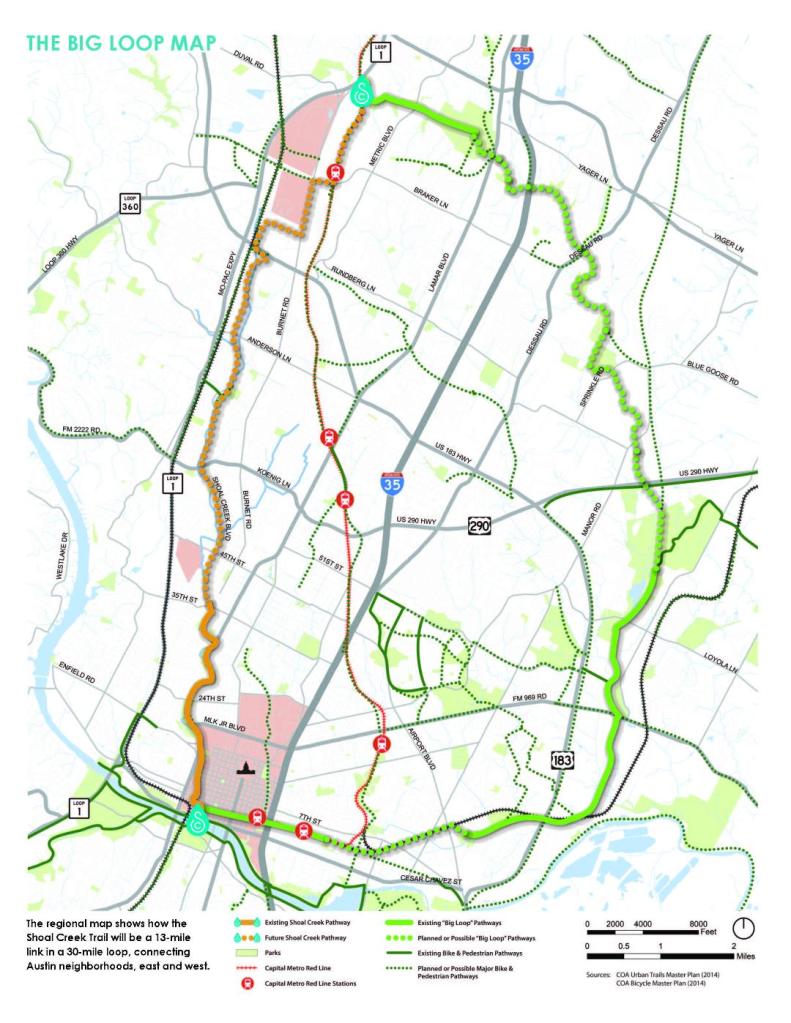 The lesson for me is that campaigns like this are long-term affairs. They’re not a time trial, they’re not even one mountain stage in the Tour de France. They are several Tours de France in a row – the proverbial marathon. That takes staying power, dedication, continuity, passion and more. It’s also important to have a vision. In this case, it’s the “Big Loop” — a connection of trails that allows one to circumnavigate the northern central part of the city over 31 miles.