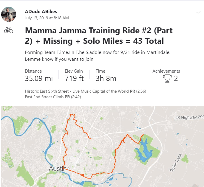 The moral of the story is be sure to eat, sleep and drink properly, especially if you’re going to be on a medium to long bike ride in high heat and humidity. And on days when you’re not feeling well, don’t push it. Just go home. If you are in Austin and want to join me on this ride for a great cause, it’s September 21 in nearby Martindale, Texas.