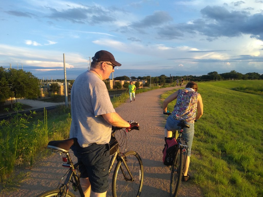 The ride is slow enough that it’s reminiscent of just exploring your neighborhood with buddies during summer vacation. And it turns out that there is a mindset and art to such a ride. For me at least, the urge is to go faster, which means I do not notice as much. So tooling around, wandering hither and yon, retracing our steps in some cases, all in a leisurely fashion, is relaxing. I found myself really enjoying the non-competitive nature of the ride. Of course you have to pay attention, but we took sidewalks and backroads through the still being developed Mueller.