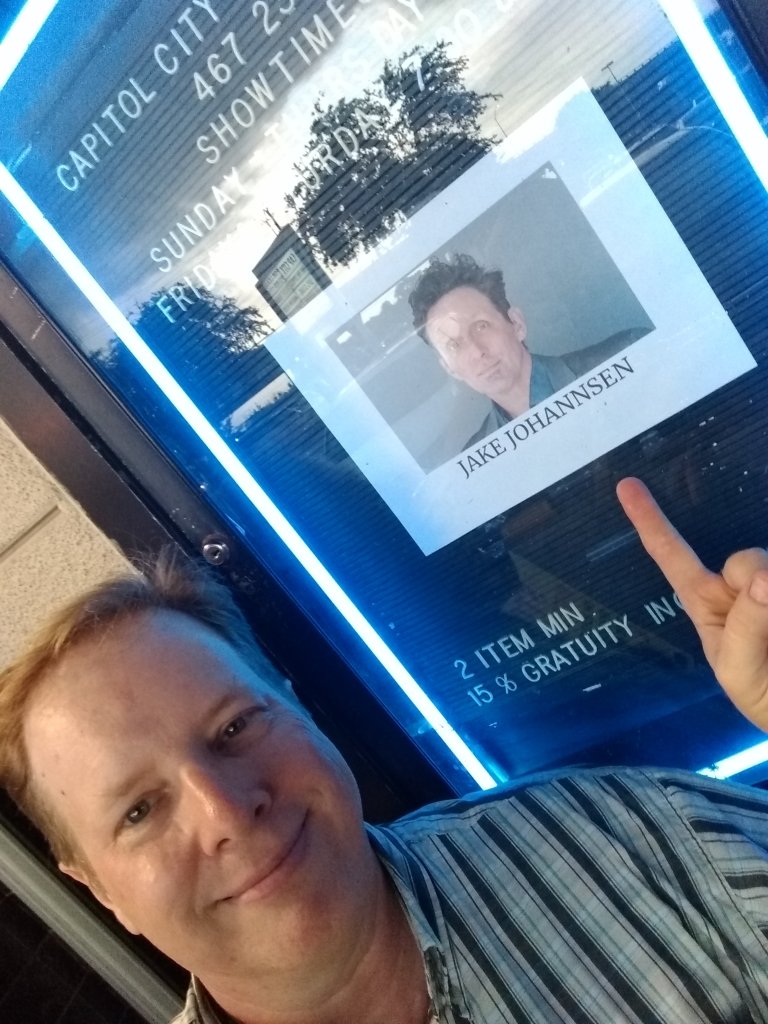I got to see, hear and touch (just a handshake, mind you), professional funnyman and human being Jake Johannsen after participating in, well, just attending, his first show of a four-night stint 8/14-17 at at Capitol City Comedy Club. A couple of friends and I were fortunate enough to see his show again. I wrote about his hilarious stand-up comedy act last year. Some of his material was the same (but just as funny!), and quite a lot was new. Many jokes were laugh til you almost cry funny. One woman even slapped her leg while laughing, and he commented on that, comicly, of course. And then we got to meet and chat after. Very cool. More after the More bar… which I’m told you don’t really see. Never mind.