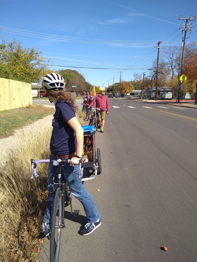 On Sunday, Austin (a new member of NEATXBG – that’s his name), Barrett, Leslie and Thomas and their two kids (in a trailer) joined me for a ride. Our mission: to seek, document, and eventually report and have fixed just a few of the fails that make cycling in Austin less safe than it is purported to be, can be and should be. If you want more people to ride, you’re going to have to step it up and make it a lot safer and accessible. Can you do better? Si se puede. Yes, you can.