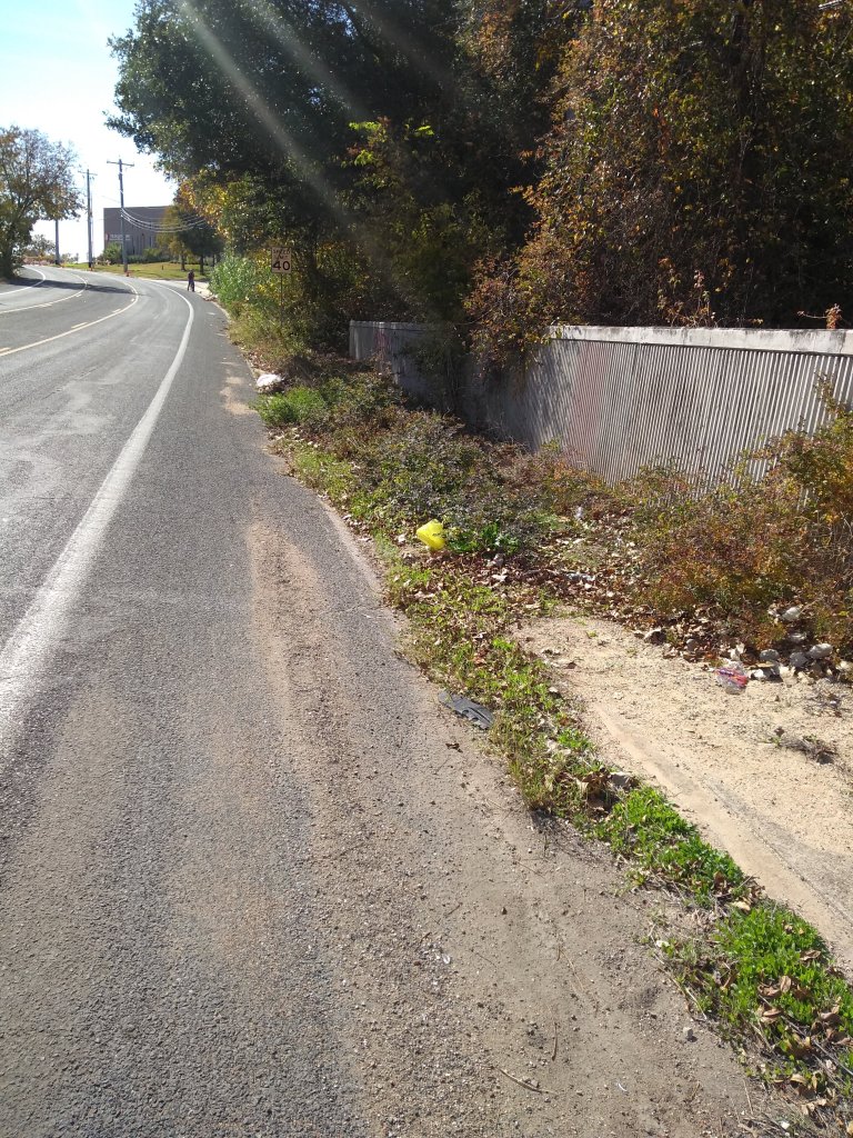 Take these four images, for example: 1) A parking place for disabled drivers. In front of that is a spot for a delivery truck, which routinely blocks the spot, the bike lane, and has knocked over the plastic bollard, even though it was moved. 2) A very wide street with no bike lanes that should have them to connect streets that do. Missed opportunity! 3) and 4) Tall grass growing out into the non-existent bike lane and a dangerous bump in the asphalt by the drainage culvert.