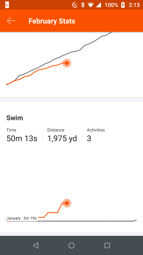 Strava, the fitness app I use through my Garmin watch, tracks swimming alongside biking and running. Although I have only a few efforts under my Aquaman belt, I’ve already noticed improvement in both speed and longevity. Check out this data chart.
