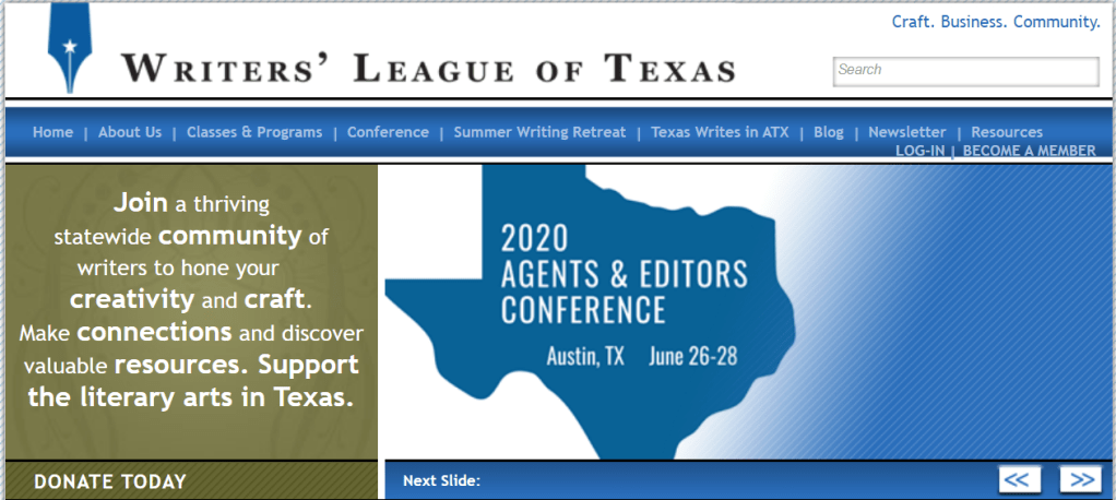 That is, they (YOU) sponsor me to join the Texas Writers League and their Manuscript Contest – TODAY! (3/20/20) The benefis for me are having a snippet of my book reviewed professionally and even better, a shot at an awesome prize: free admittance to WLT’s Agents and Editors Conference. So if you want to learn about this and might want to pitch in, keep on reading.