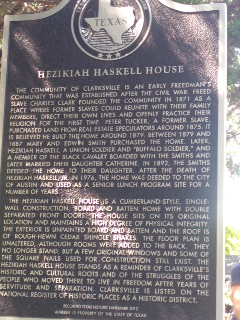 We headed west and overall made about a dozen stops. I won’t recount them all, but the second one was up a pretty big hill. Many riders were not ready for that and wisely got off and walked. I ground up it and stopped to hear about the Hezekiah Haskell House. Long story short, it was owned by a former Buffalo Soldier after the civil war, when many black people lived in this part of West Austin known as Clarksville.