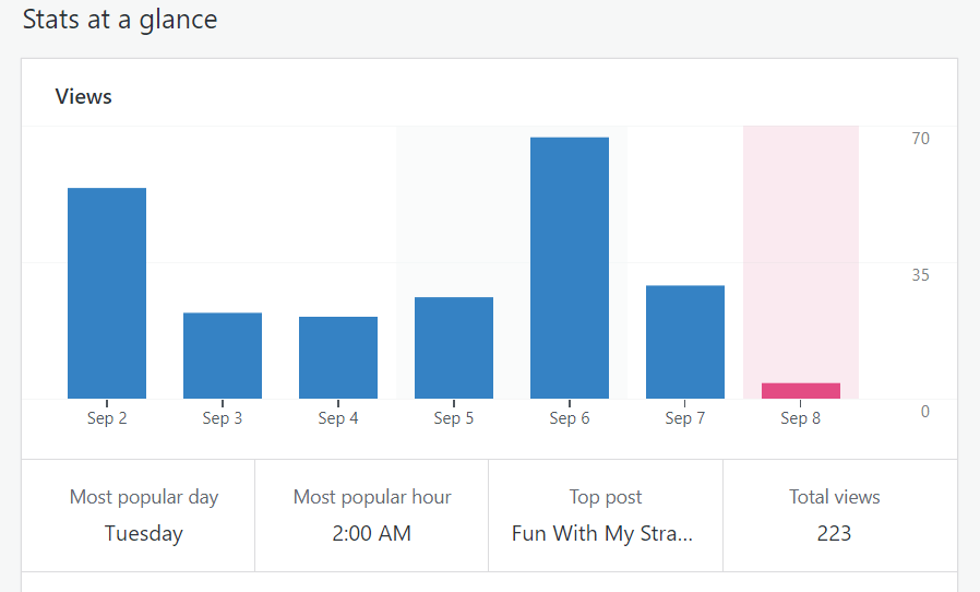 Regular readers know I’m kinda into numbers, mostly how many miles I’ve biked in a given day, week, month or year. For better or worse, it’s a cornerstone of my bicycling career, such as it is. Usually I look at what I’m doing as measured by Strava, the fitness tracking app. But occasionally I’ll go behind the scenes with WordPress (the program this site runs off of) to look under the hood of this blog, and today is one of those days. I learned some stuff that was kinda interesting. Maybe you’ll find it so as well…