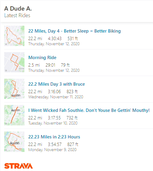Even though I’ve reached my YOOGE goal of riding the equivalent of the equator, I just keep riding. My daily distance goal on the bike right now is about 22.2 miles. That’s so that I can achieve my annual goal. It’s a little higher because last week I was engaged in moving, and time and energy barely allowed even 5-7 mle rides. This week, I’m back at it, but having to pay for the slacker week. It’s not a lot more than before, but even 22.2 is sufficient to create some fatigue. The other night I felt a lot more invigorated, probably because I got caught up on some sleep (which often seems to be a deficit, like for many people).