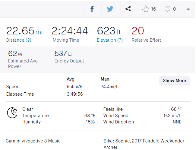 1. Well, a lot for one is not for another. There is also speed. If you have time you can do more. Being a dude sans portfolio (and money!) most of the time .And “comparison is the death of joy,” as the Buddha said. That’s all to say you’ll have to find it in my blog or in Strava. 🙂