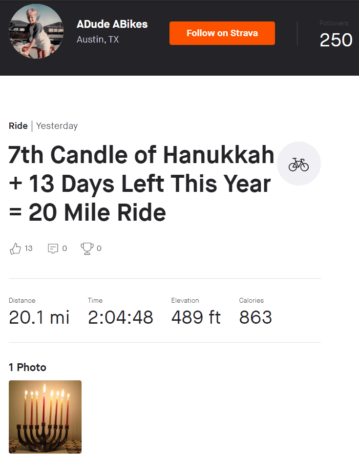 The rest of the ride went uneventfully. I stamped out the miles on the pedals, not at a high speed, but it was a bit like being on auto-pilot. Stopping for a snack. Avoiding potholes, glass, cars and pedestrians. Passing through downtown, looking at the people brave or dumb enough to be out going to restaurants. Not really having to think about where I was going except to make my usual rectangular or boxy map in the Strava fitness app. As a part of my surroundings and simultaneously detached, I was always moving forward.
