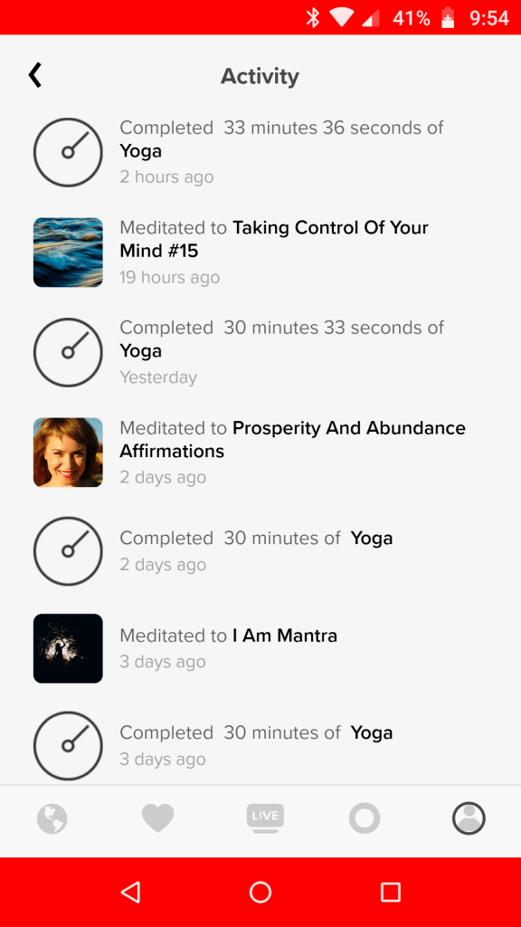 I started using Insight Meditation Timer on December 27, 2015, right after I got a cell phone and Strava. It has guided meditations, a social component and more, but the main thing for me is a way to record that I’ve done yoga. Not that I care if anyone doesn’t believe me. Why would I make it up? But just for fun, here are some screen shots of my activities on the IMT.