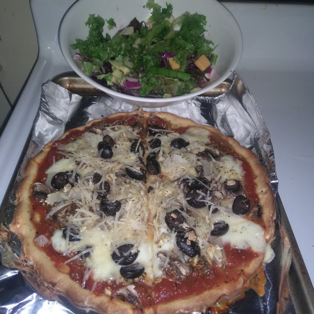 grain free pizza and salad – i only ate half the pizza, a miracle!