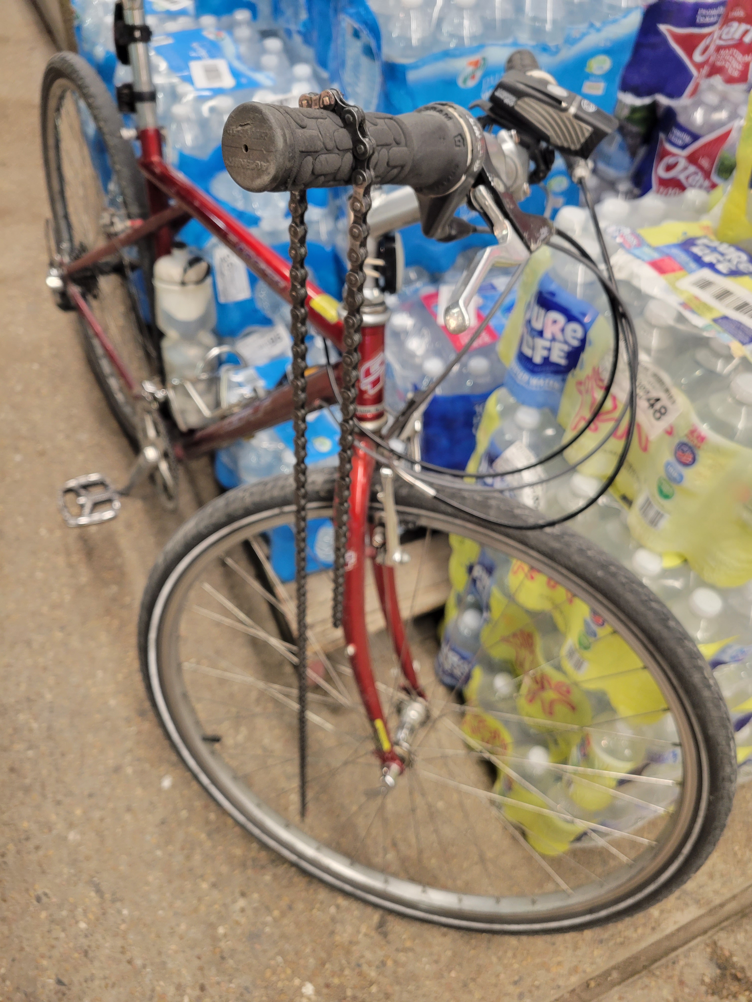 Before her kidnapping, Sophie and I had just recently had a chat about just passing 20,000 miles. (It’s a fun imaginary convo I had with her you should really check out). If she were flesh and blood, not a machine, you might say we were a pretty bonded pair, a cute couple, two peas in a pod. I mean, 20,000 miles, are you kidding me? For a fat, middle-aged guy who never felt the need, the need for speed, that’s a ton of time spent on the bike. Even though Sonnie has more gears, she’s a less comfortable fit and fewer features, there’s just no comparison to Sophie; they’re different. Yet, I still ride, albeit slower due to thicker tires, heavier frame, and so on. I’m still aiming for about 15 miles a day. And we are getting better. Here are some shots of Sonnie. (I refer to my bikes as female because of the probably sexist tradition of naming ships that way; being a cis-gendered male-identified and currently un-partnered human, I do respect and like the ladies. No harm is intended.)