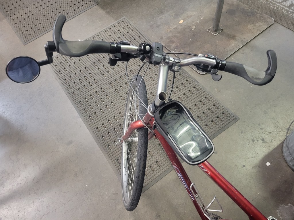 So, what do I tell you? I suppose the usual will have to suffice: some data, some photos, some thoughts. The first being I went to storage and took the grips and extenders off the carcass of dearly departed Sookie, the Fuji Silhouette that got a cracked frame I couldn’t ride anymore, and put those on Sonnie, the GT Arette. Sophie the Fairdale is still sadly long gone and likely never coming back after being stolen eight months and a day ago. So it’s just Sonnie and moi.