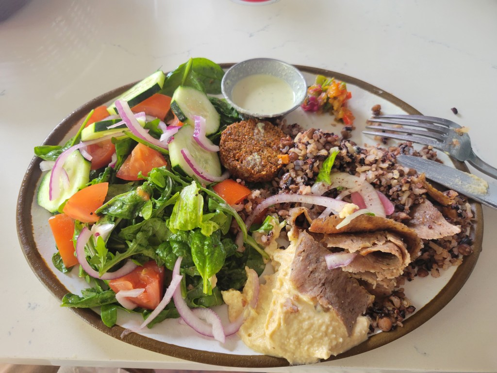 In other areas, I continue my daily walking, yoga-ing, reading, writing, fluting, foam rolling, flour eschewing, and salad eating. I’ve let go of the five minutes of meditation after yoga and even the sivasana pose, because the former is just not very productive or satisfying, and the latter well, I’m often taking a long time lying on my back so am feeling rested afterward. However, I should probably add both back in. “Should is shit,” though, a college classmate told me long ago. Speaking of college, one of my best mates from those days stopped by on a cross-country tour for a whole week. That was a rare treat, given we hadn’t seen each other since a subsection of our small class had a reunion in California over a decade ago. He’s a bit camera shy, though.