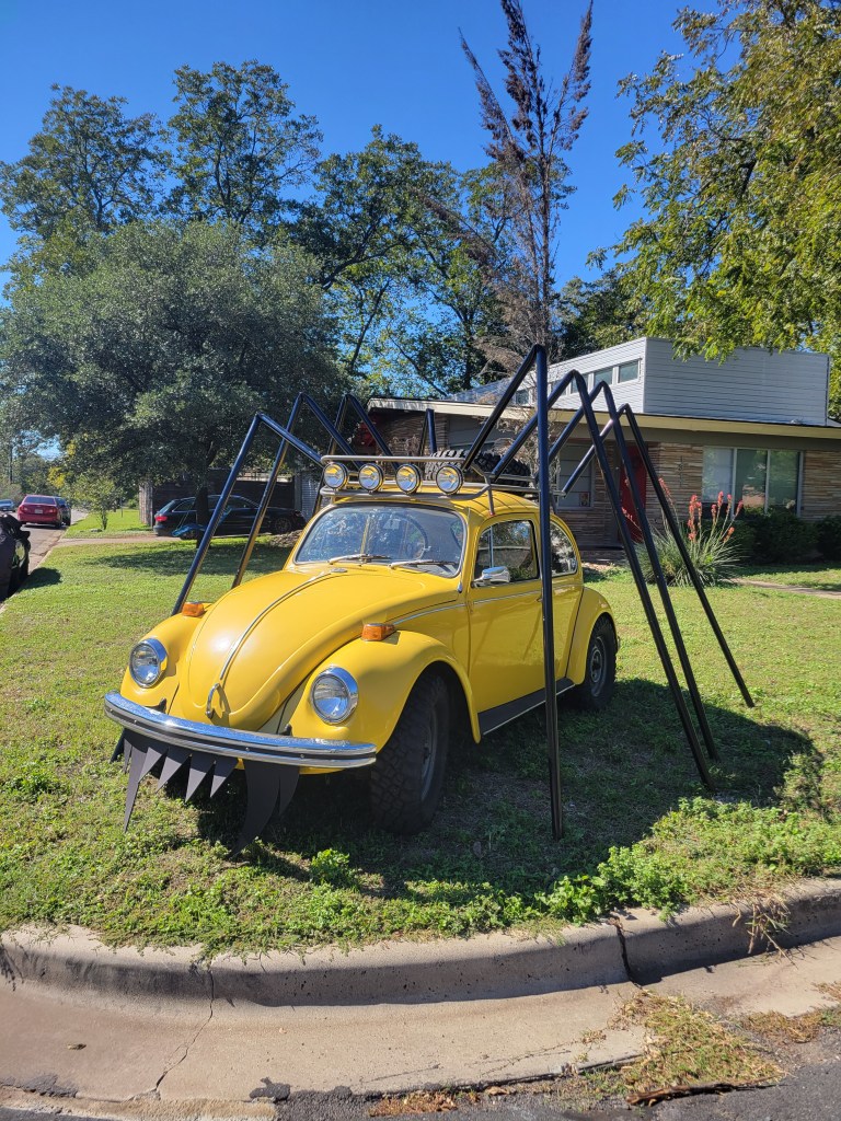 2. The VW bug picture reminds me of a bad horror film. Its chief claim to fame was that our ex-mayor was the Executive Producer (oh, and it starred Alan Hale, AKA The Skipper from Gilligan’s Island, as well as Barbara Hale, AKA Della Street from Perry Mason). It involved an invasion of giant spiders, one of which was a VW bug with a spider body on it.