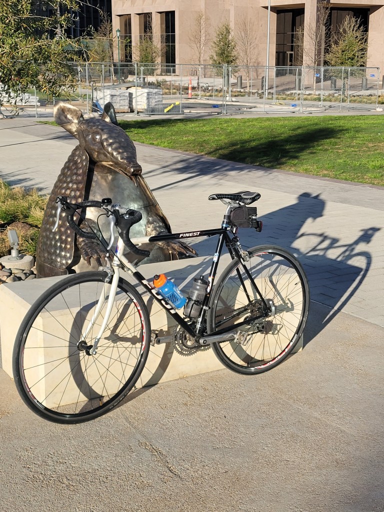 After last month’s crippling ice storm, and some 90 degree days, winter has reasserted itself in Central Texas. After a cold front with some rain, it’s cooled off a fair bit, is sunny, with little wind. In other words, it’s just about perfect for biking and all manner of outdoor activities. Things are already starting to bloom, spring break is coming and with it the South by Southwest juggernaut, March madness basketball if you’re into that sort of thing, and just lots of stuff going on outside before it gets too hot and humid and then just hot. For A Dude, that means ditching the home trainer and getting out there more on Sommar the Fuji Finest bike.