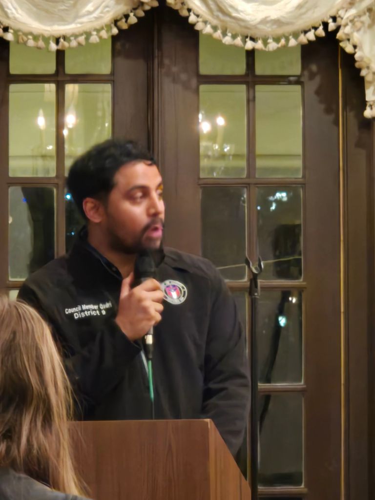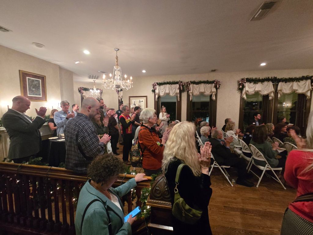 Speaking of the devil, there were actually four Austin City Council Members present. Being politicians, of course they had to talk. One who is leaving due to being term-limited didn’t speak. Basically they all said the same things, which could be summarized as this: “Good job kicking our butts, keep doing it.” Of course that’s an oversimplification. Whadya want, a freakin’ transcript? It was a party. Jeez. Holiday spirit much, Scrooge?