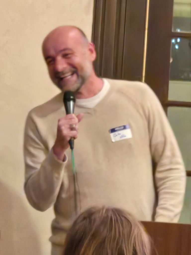 Oh, yeah, I had a cool “Strava flyby.” As I was standing at the bar to get my can of sparky agua, I heard a voice behind me say, “I happen to know the dude.” I turned, and looked up. He was taller than I remembered, a little greyer, but still thin and fit, with the same mischievous grin and smiling eyes.