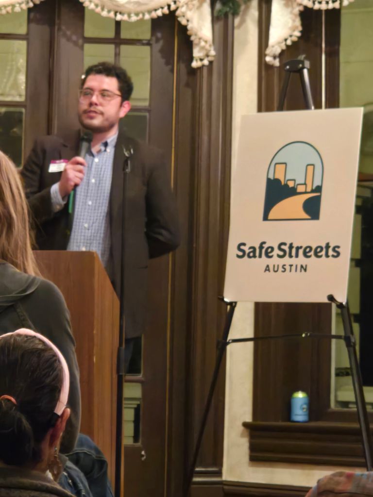 Safe Streets Austin, formed from the merger of Bike Austin, Walk Austin, and Central Texas Families for Safe Streets, had their annual fundraiser back in late November. Yours truly attended their first one a couple of years ago, missed last year (though am not sure they had one), and was invited again this year. I’m filing this belated report. Don’t sue me. I know lawyers.
