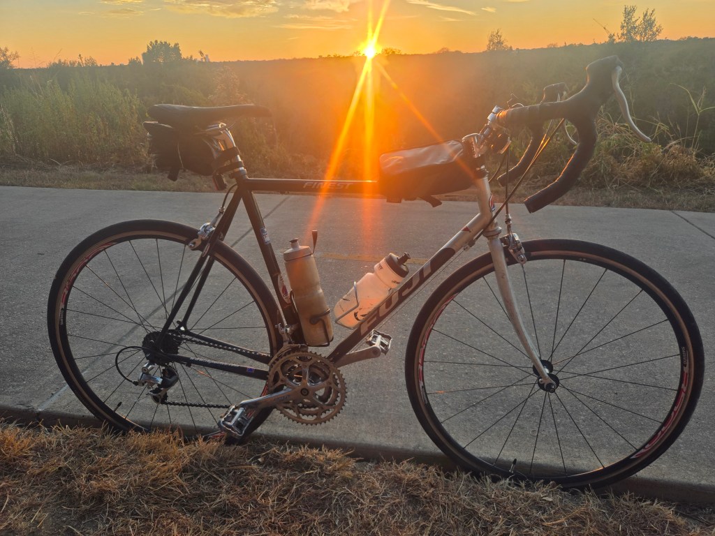 For the first 15 miles, I was accompanied by Lauren and Rhodney. It was a warm autumn day, and we enjoyed our time together. After they departed, I stopped for one of may rests. And eventually continued my annual ride on Sommar, the Fuji Finest road bike I was gifted during a time Sonnie was on her adventure (being stolen, and then me stealing her back by Orion the Awesome. As I kept going up and down the trail, I thought of everything and nothing. I was in my body, and having an out-of-body experience. I saw bugs and birds, bushes and bicyclists, smiles of passersby, and the scarlet sunset sparkling on the skyline. It was a sublime day, but it was a hard bike ride, and yet it wasn’t.